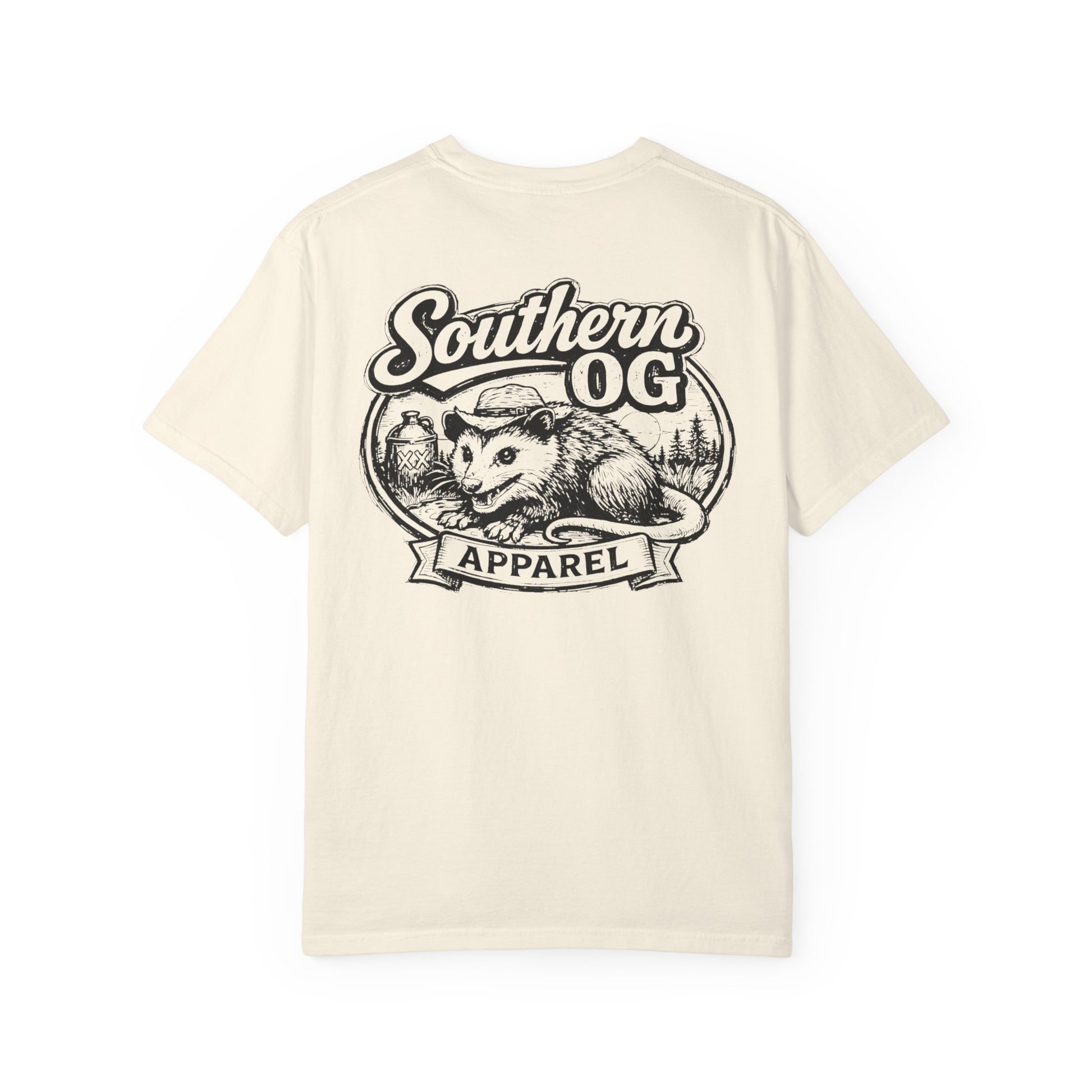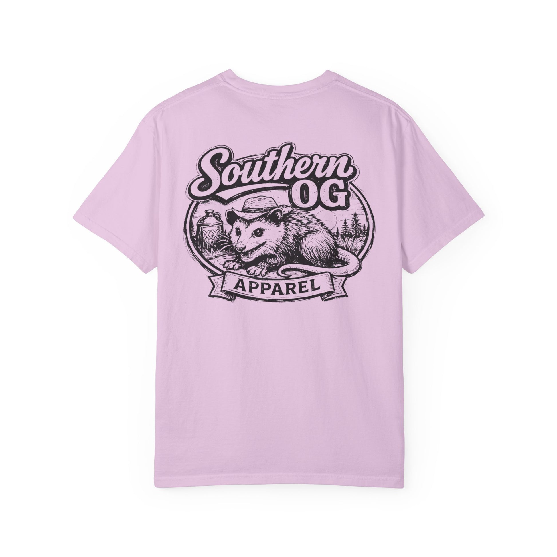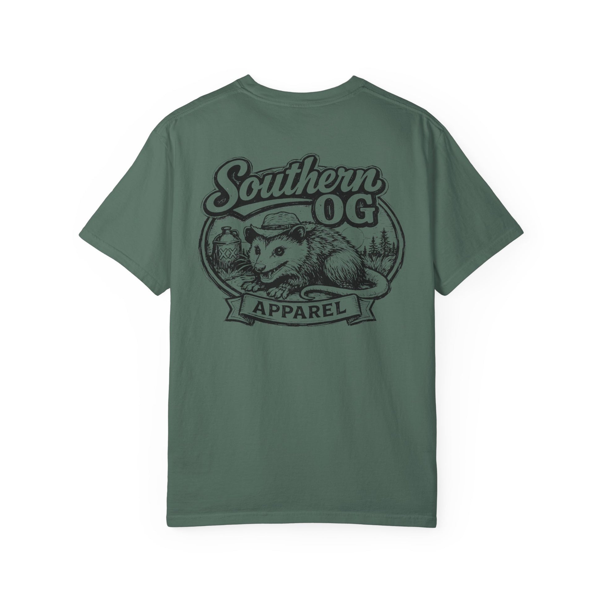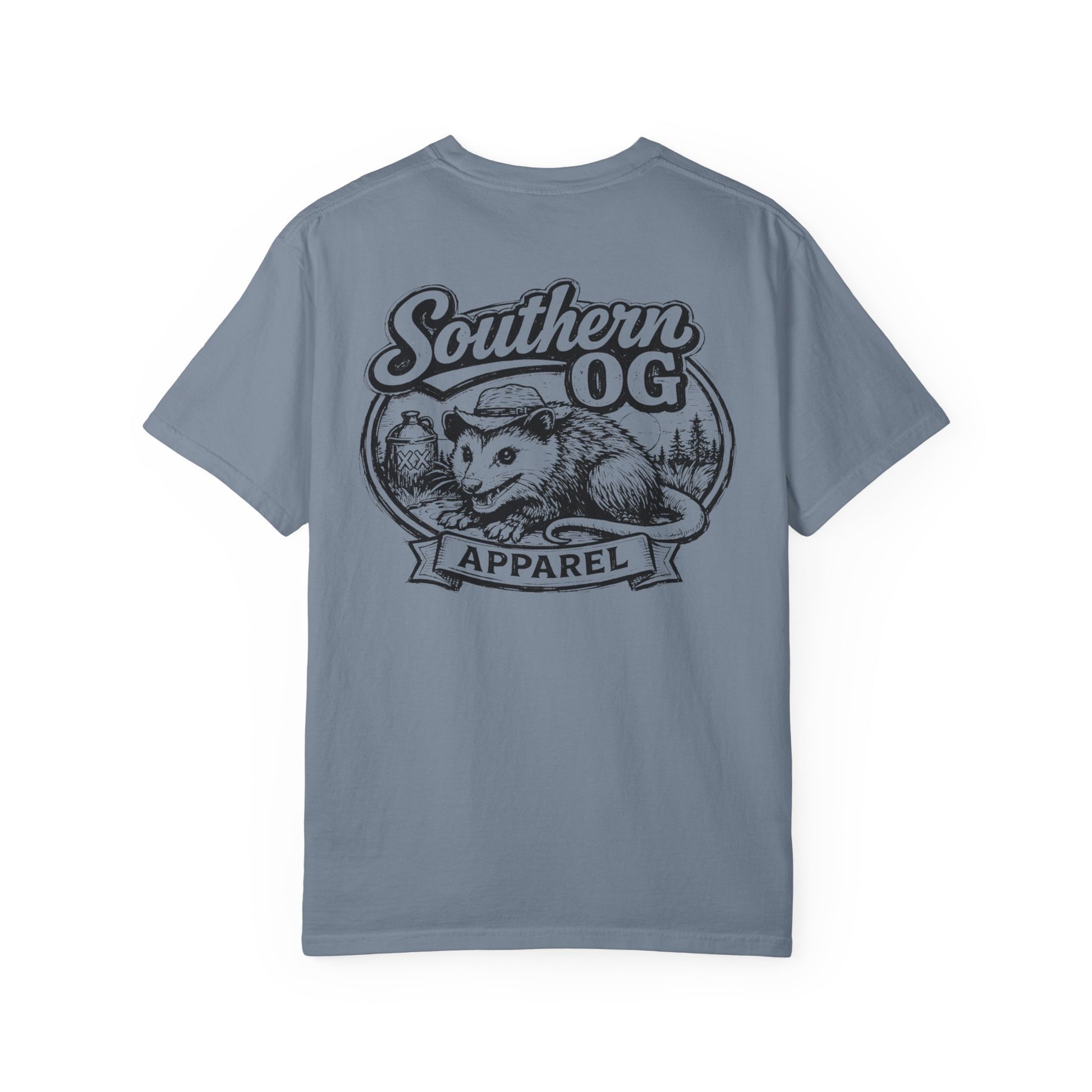 This heavyweight, garment-dyed tee brings a lived-in, down-home vibe to your everyday rotation. Built from 100% ring-spun US cotton and dyed after construction, the shirt feels broken-in from the first wear — soft, textured, and comfortable without losing structure. A relaxed fit and tubular, no-side-seam build give clean lines and less bulk, while double-needle stitching reinforces the seams for long-lasting wear. The back features a bold, hand-illustrated Southern OG badge with rustic lettering and a signature critter, and a small chest logo keeps the front simple and wearable. Offered in a wide range of colors and sizes S–4XL, this tee layers easily for cool evenings, long drives, or weekend hangs at the porch.