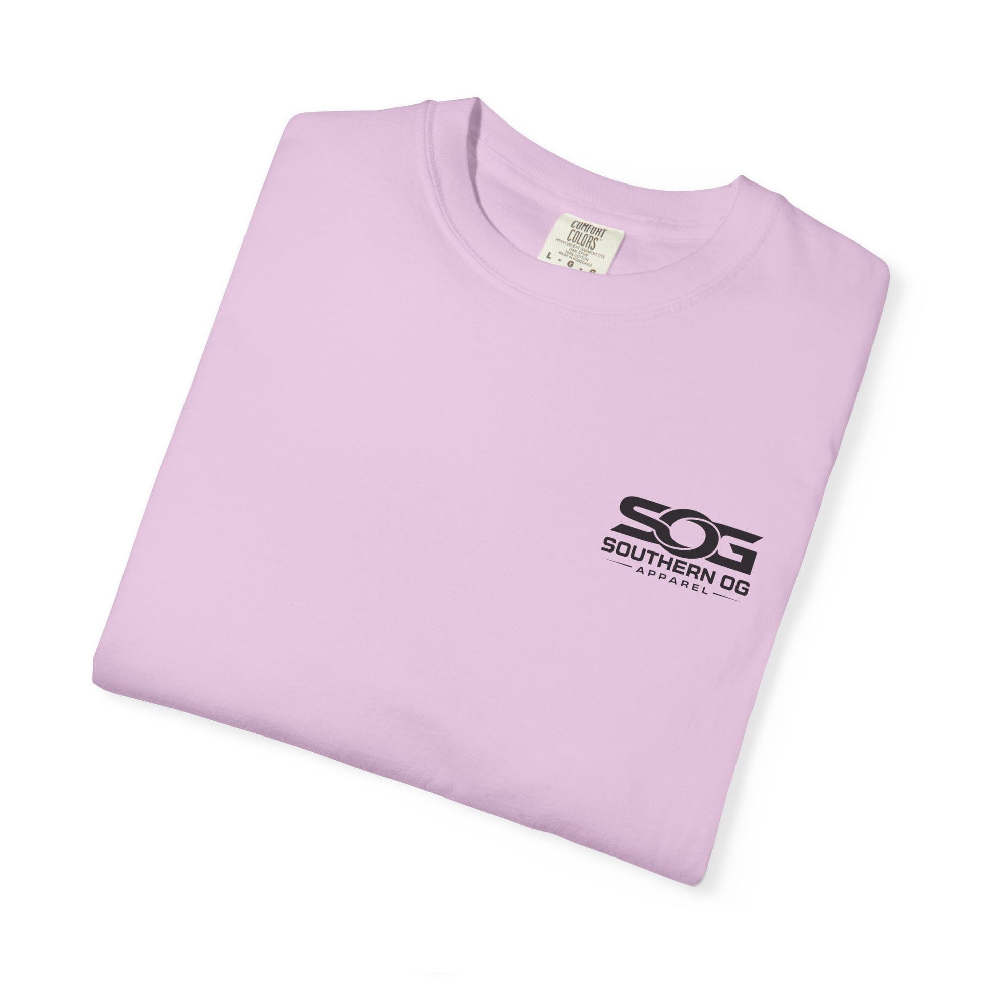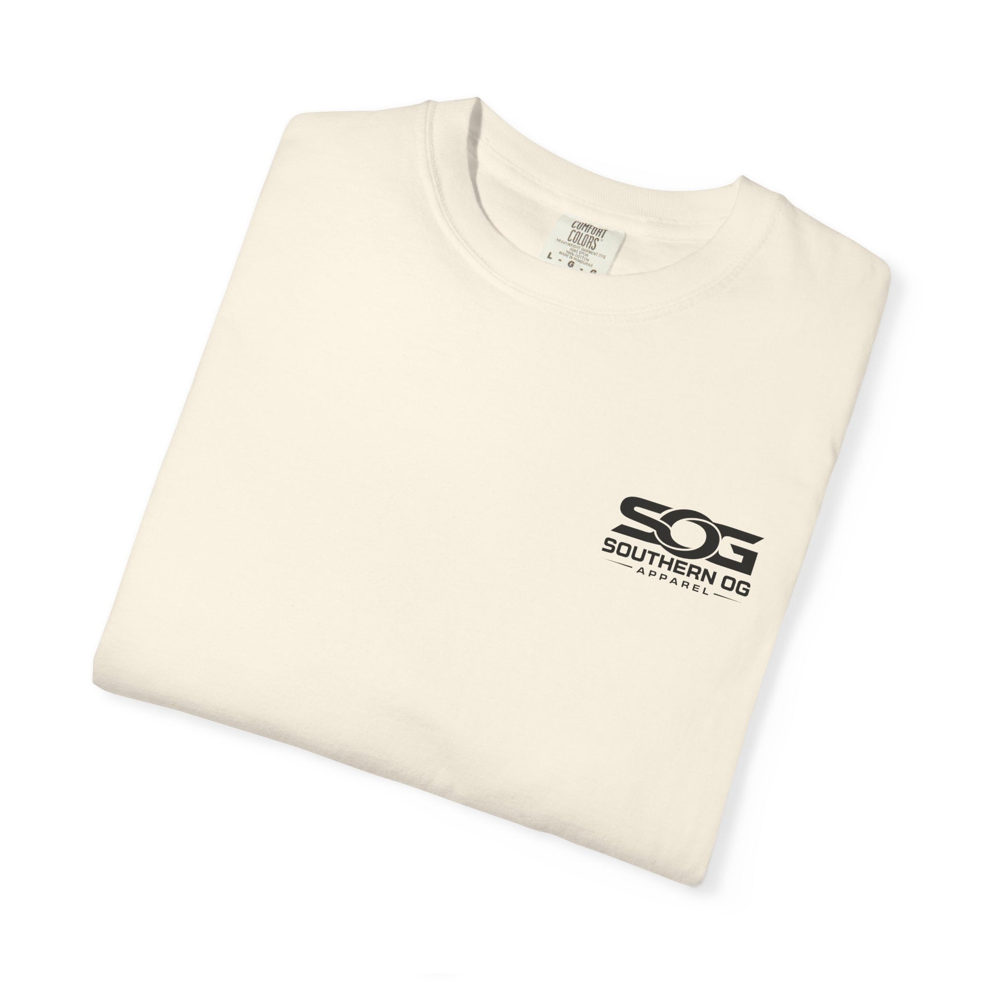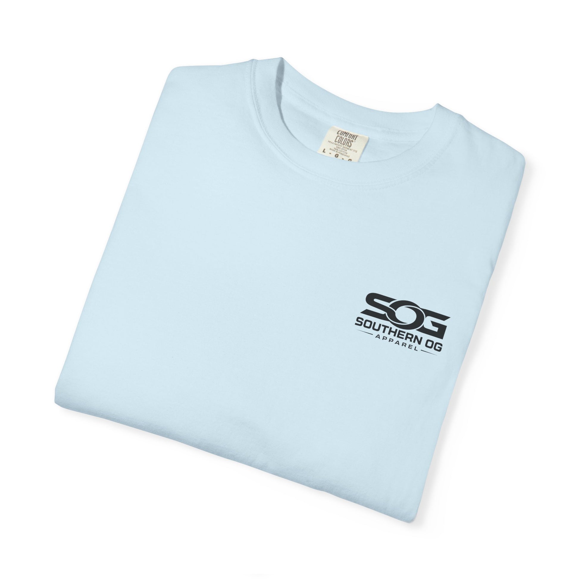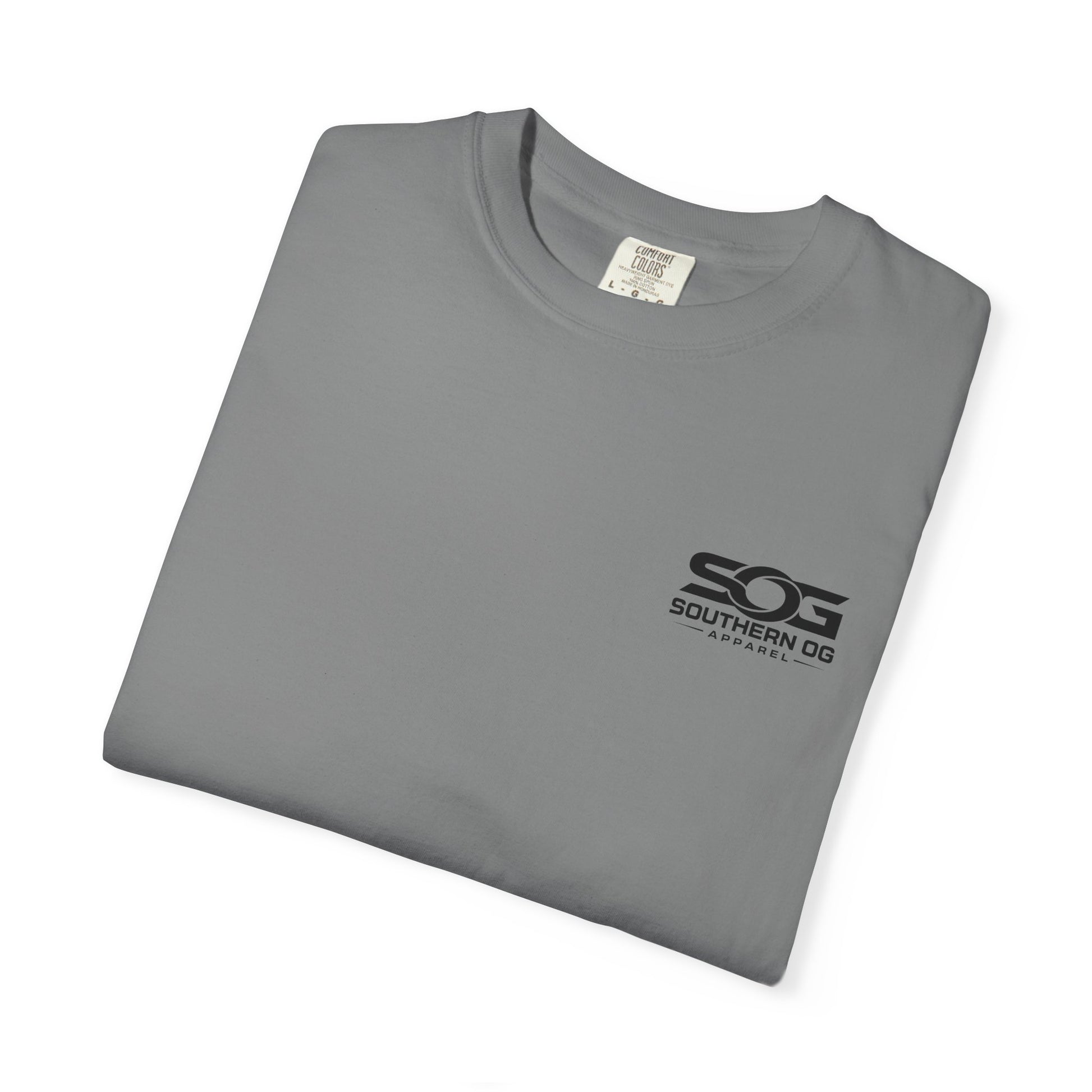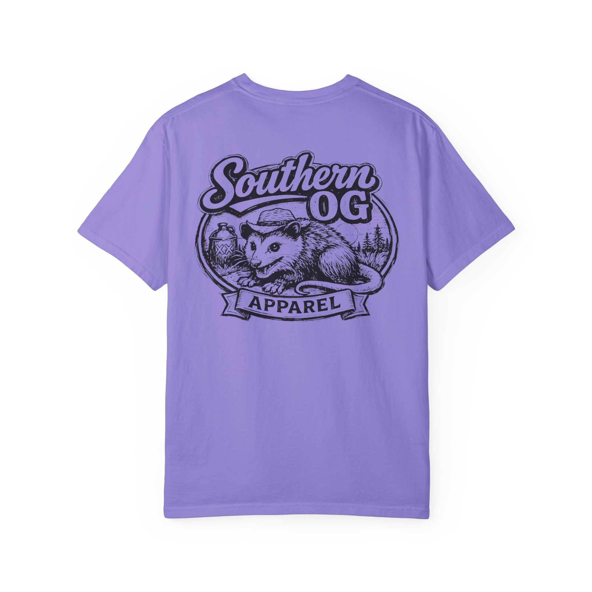 This heavyweight, garment-dyed tee brings a lived-in, down-home vibe to your everyday rotation. Built from 100% ring-spun US cotton and dyed after construction, the shirt feels broken-in from the first wear — soft, textured, and comfortable without losing structure. A relaxed fit and tubular, no-side-seam build give clean lines and less bulk, while double-needle stitching reinforces the seams for long-lasting wear. The back features a bold, hand-illustrated Southern OG badge with rustic lettering and a signature critter, and a small chest logo keeps the front simple and wearable. Offered in a wide range of colors and sizes S–4XL, this tee layers easily for cool evenings, long drives, or weekend hangs at the porch.